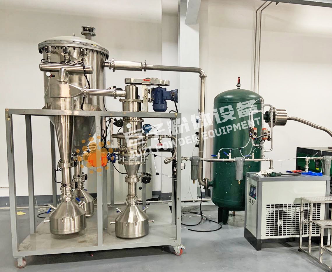 高性能、高纯、高熔点的球形钛粉是生产航空发动机关键零件的重要原材料。在球形钛粉的加工制备中,闭环气流分级机是其中一种常用设备,其主要作用是将球形钛粉在氩气包含状态下,将小于15微米的细粉分离。 闭环气流分级机是一种惰性气体保护分级设备,通过将氩气注入设备系统,赶走系统中空气,让分级加工整个运行