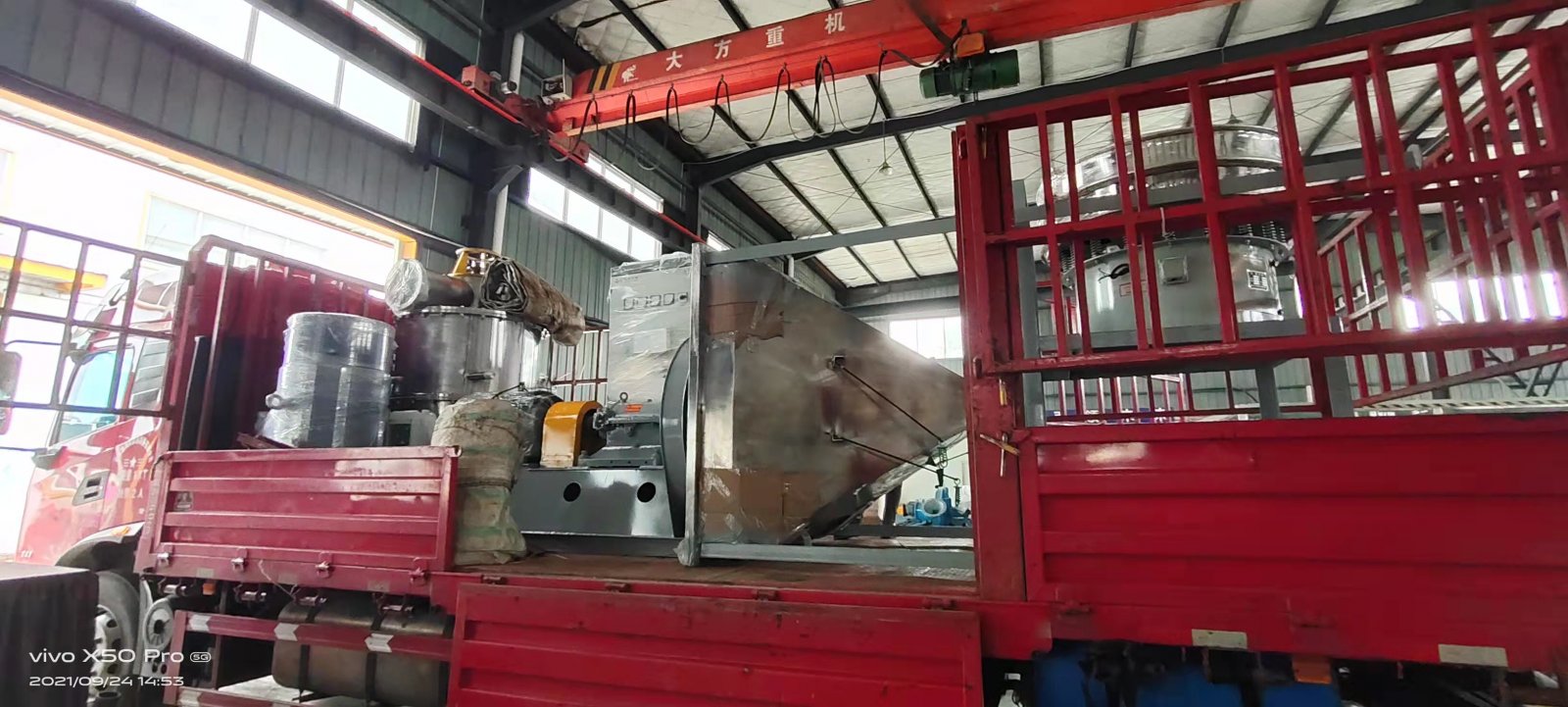 ZJ-C1000分级式冲击磨发货河北昨天下午,四川众金粉体设备有限公司为河北保定客户生产的ZJ-C1000分级式冲击磨顺利装车发货,产品保质保量按时交货,满足了客户的使用需要,得到了客户的充分认可。 在产品抵达现场后,公司会派出专门的粉体设备技术