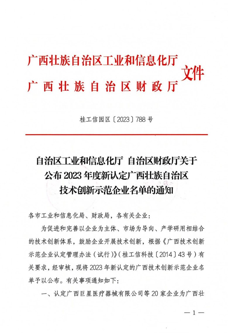 日前,自治区工业和信息化厅、自治区财政厅公布2023年度新认定广西壮族自治区技术创新示范企业名单的通知,根据《广西技术创新示范企业认定管理办法(试行)》(桂工信科技〔2014〕43号)有关要求,经市经信部门推荐、专家评审、社会公示等环节,桂林矿山机械有限公司等20家企业获评2023年度新认定广西技术