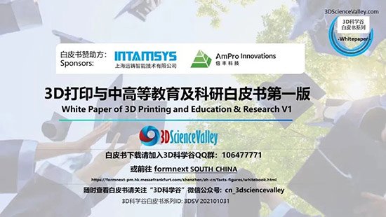 3D科学谷《3D打印与中高等教育及科研白皮书》封面当前,3D打印技术已成为《中国制造2025》、工业5.0未来智能制造的一项关键技术,在增材制造产业的应用范围不断扩展。3D科学谷发布的《3D打印与中高等教育及科研白皮书》聚焦我国增材制造人才培养体系中的中高等职业教育、普通高等教育以及科研院所的调研分