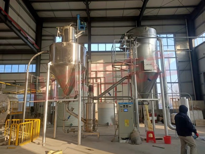一种废旧锂电池正极粉提纯设备流程说明: (1)物料通过大倾角皮带输送机输送到料仓内,通过变频螺旋匀速把料输送到振动筛内,通过振动筛的筛分后,筛下物通过真空上料机输送到后面的料仓内,筛上物进入到料仓内,然后通过变频螺旋匀速把料输送到剥离主机喂料口内。 (2)物料通过负压进入分离主机后,通过内部的