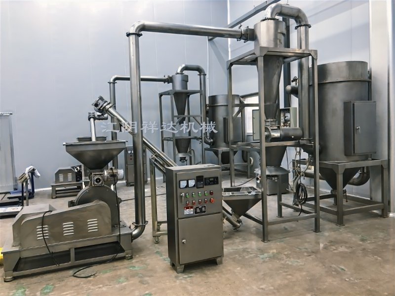 主要适用于制药、化工、食品(例:生姜、辣椒、胡椒、油麦、大豆、白糖|八角、桂皮)等中低硬度物料的粉碎加工,细度在10-120目之间调节,具有产量高、粒度细、噪声低、能耗低、维修简单、安装方便等优点,特别适用于油性、粘性、热敏性、纤维性等低硬度物料的粉碎加工。