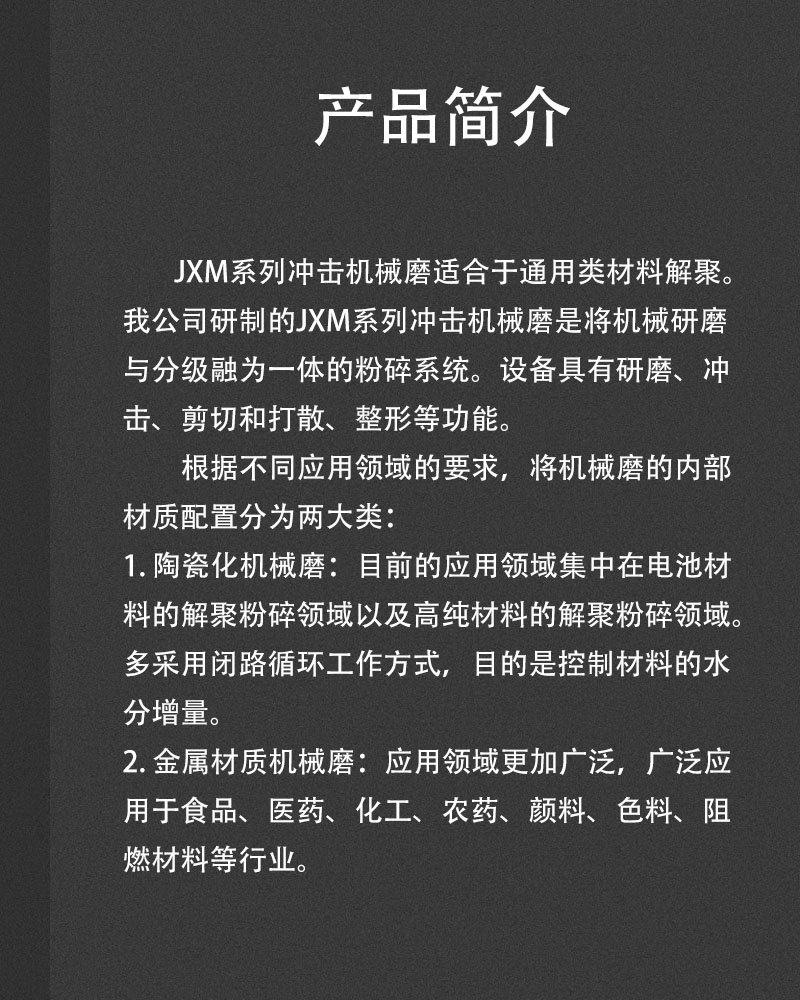 JXM系列冲击机械磨适合于通用类材料解聚。