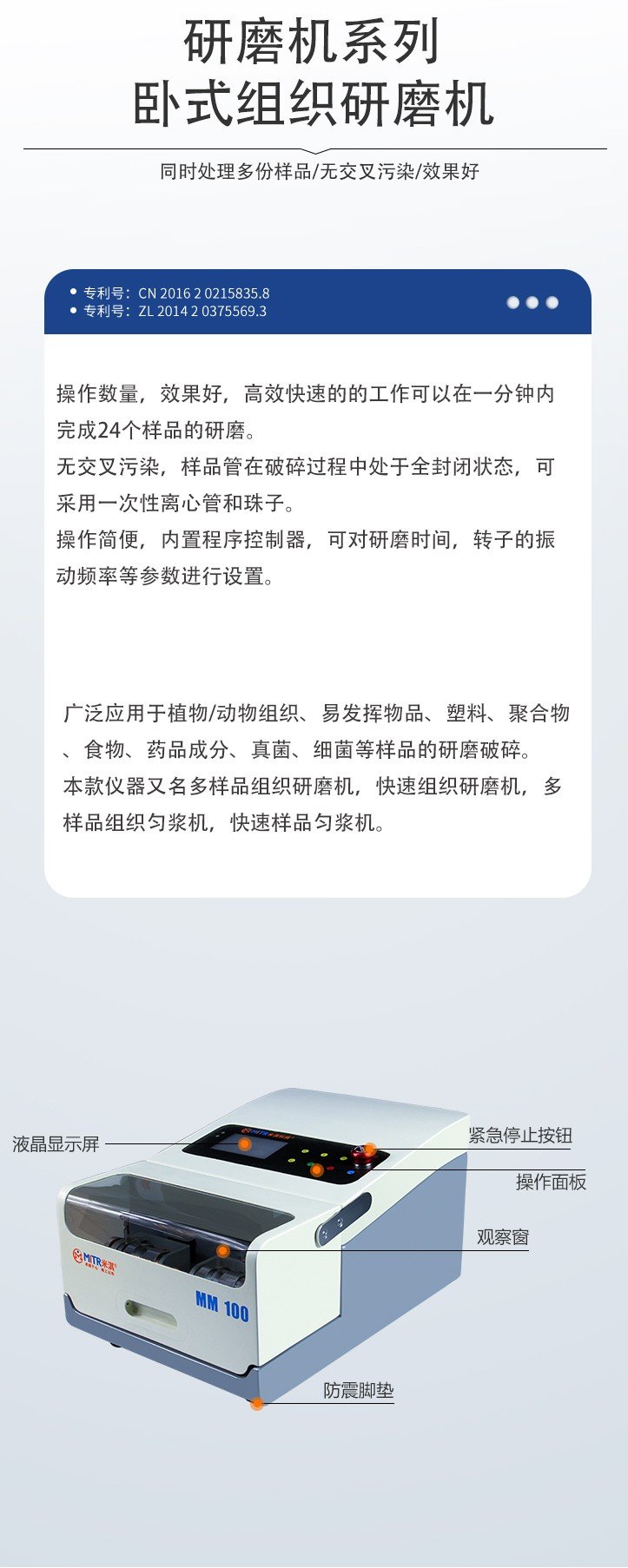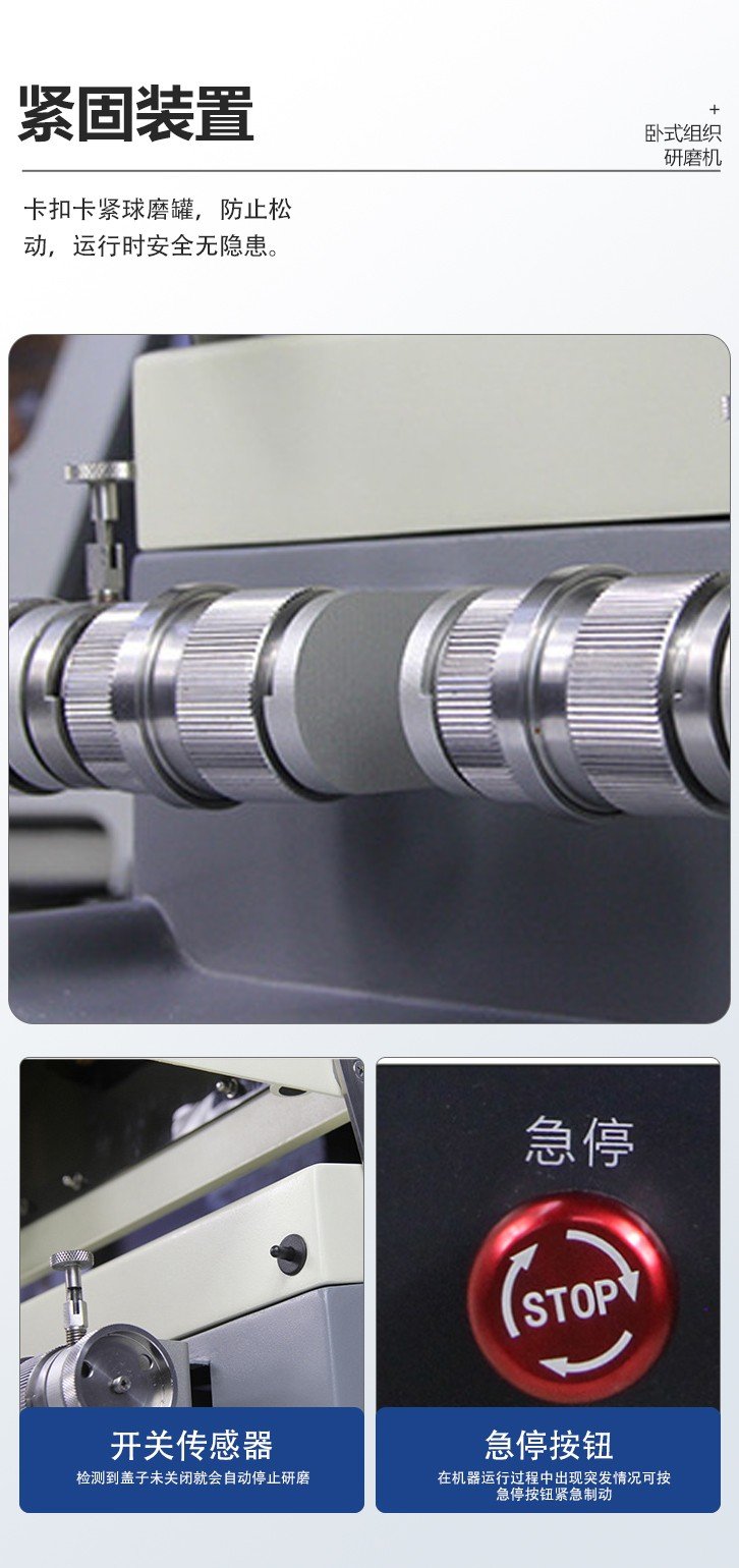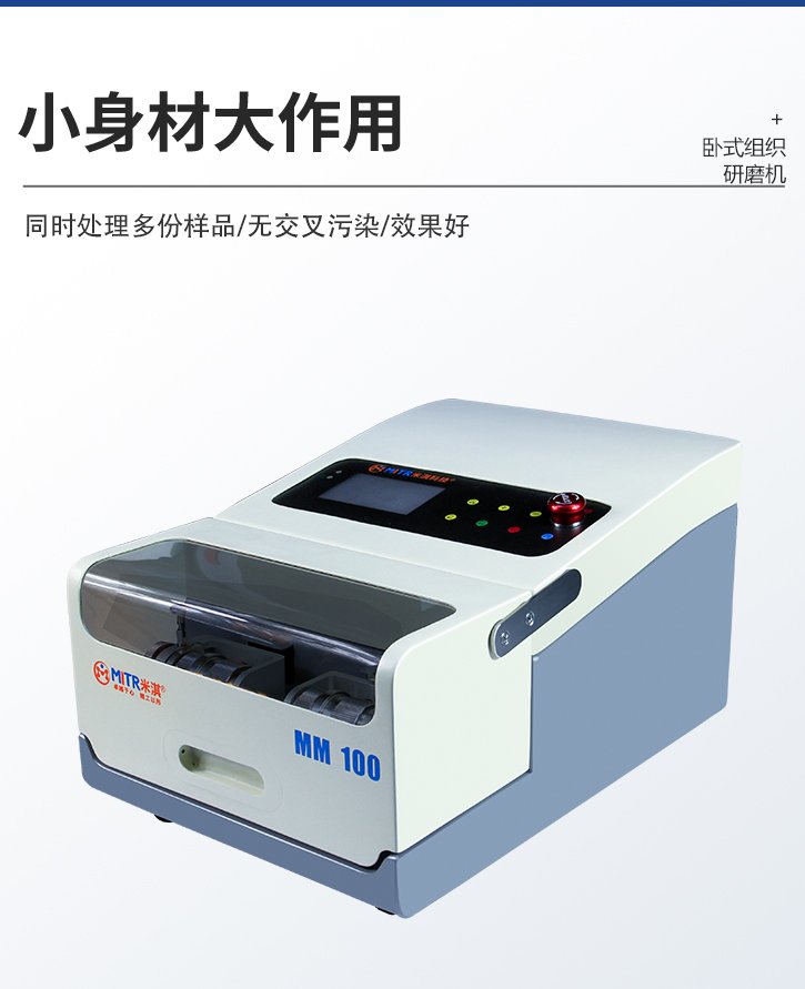高通量组织研磨仪(高能球磨机)的研磨罐是在水平方向上进行振动的,研磨球的惯性带动它们以高能量撞击位于弧形内表面的样品材料,从而达到粉碎效果。高通量组织研磨仪是专门为处理实验室少量样品而研发的产品。其不仅适用于对硬性、中硬性和脆性样品的细粉碎和精细研磨,还适用于软性、弹性、纤维质、生物材料医药等行业。其只需要几十秒种的时间就可以达到对样品研磨、混合、均相化的目的。