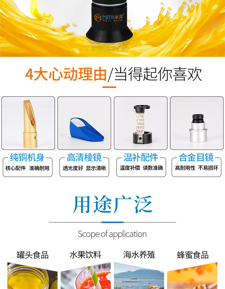 糖度计就是折光仪,是精密光学仪器,具有使用快速简便测定准确、重量轻、体积小等优点,该仪器能准确测定溶液中所含糖份的百分浓度,用于食品、农业科研等行业。