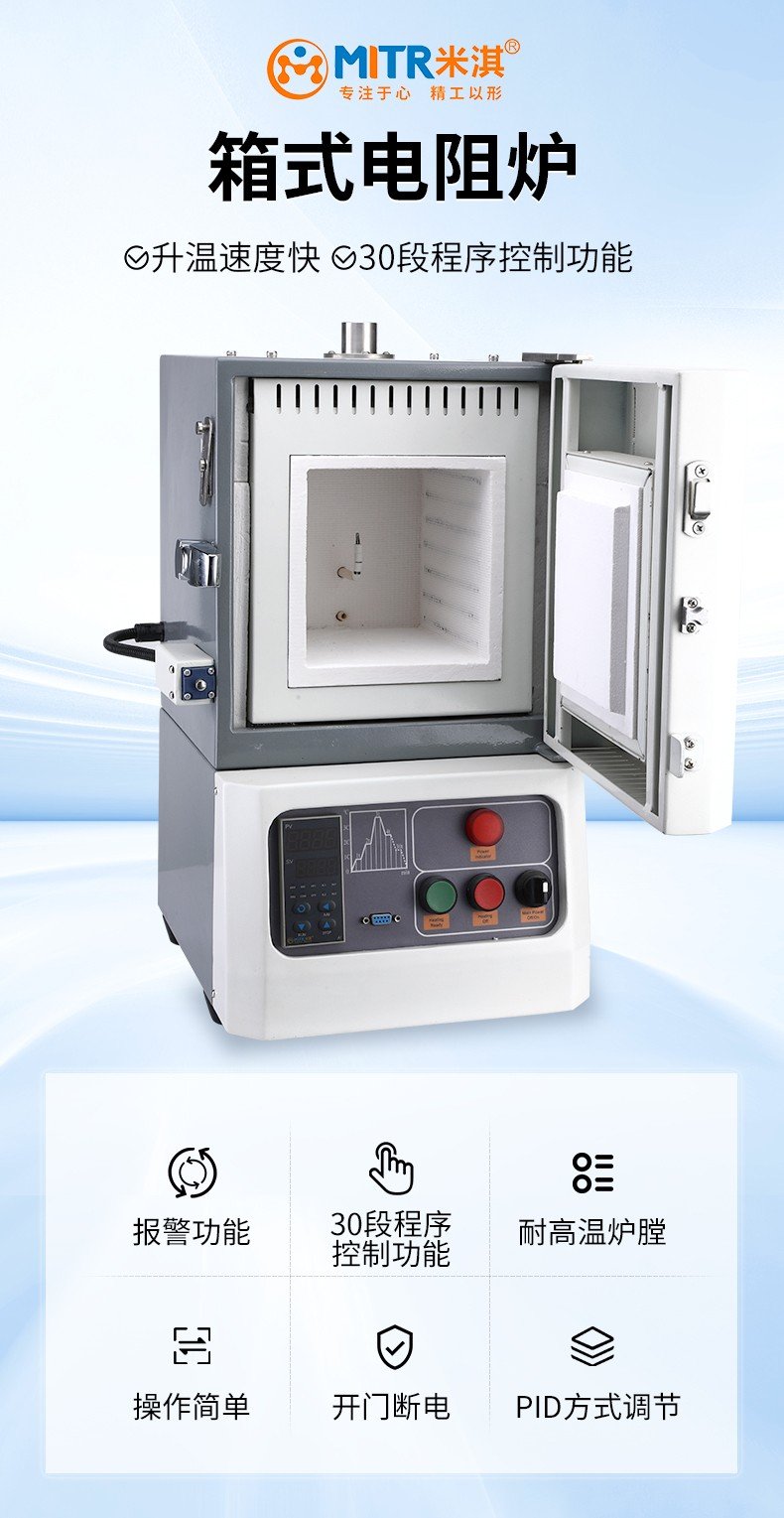 MITR-1200X-4.2L是一款小型箱式炉,其炉膛尺寸为150mmX155mmX180mm (4.2L),采用高纯氧化铝作为炉膛材料,炉膛表面涂有高温氧化铝涂层,以保持炉膛洁净,延长仪器使用寿命和提高加热效率。温控系统方面,采用PID方式调节温度,可以设置30段升降温程序,**工作温度可以达到1200℃。