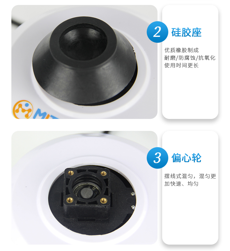涡旋混匀仪是利用偏心旋转的结构使试管等容器中的液体产生涡流,从而达到使溶液充分混合之目的。