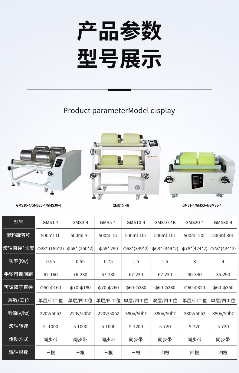辊轴距手轮调节,防止罐体水平移动