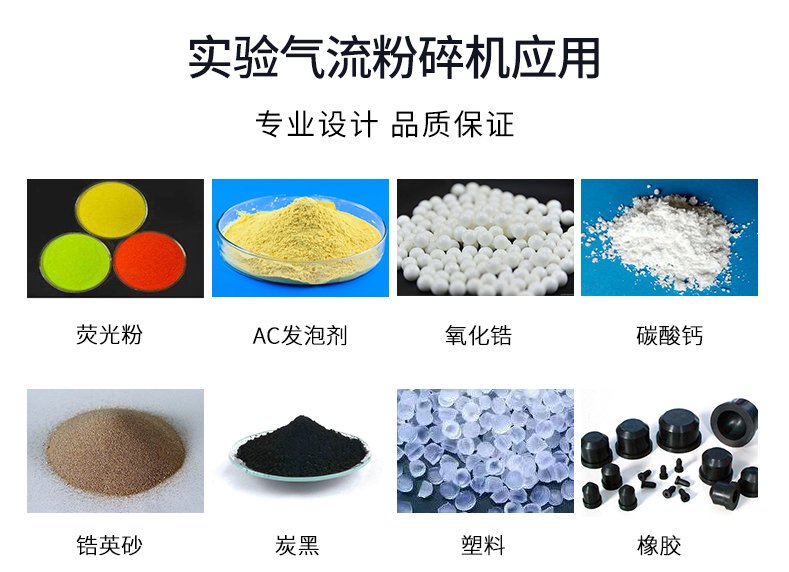 分级气流粉碎机具有超微粉碎各种物料的广泛适应性。对高硬 度、脆性物料、凝结性和纤维状的物料均具有良好的粉碎 性。如: 锆英砂、氧化锆、二氧化硅、金红石钛白粉、氧 化铝、滑石、碳酸钡、硫酸钡、碳酸钙、硅酸铝、高岭土、 炭黑、白炭黑、AC 发泡剂、复印墨粉、涂料、磷酸氢钙、 膨润土、荧光粉、石墨、塑料和橡胶用各种填充剂、农药、 珍珠粉、花粉等,随着高新技术的发展,应用范围必将更 加广泛。