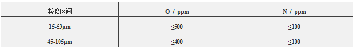 粉末特性:粉末球形度高、表面光滑、卫星球少、氧含量低、粒度分布均匀,具有良好的流动性以及较高的松装密度和振实密度。