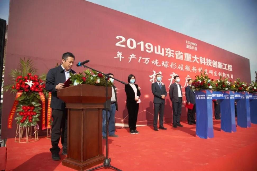 该项目总投资1.2亿元,年产球形硅微粉1万吨,2019年度获批山东省重大科技创新工程项目,填补了山东省在高端硅基材料领域的空白,技术指标达到国际标准、实现替代进口、打破国外垄断。其产品能够满足现代电子行业对硅基材料高纯、超细、球化的需求,主要用于集成电路板、覆铜板及大规模集成电路封装和航空航天、精细化工、大面积电子基板、特种陶瓷等高新技术领域。